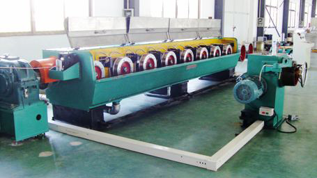 組成: 放線裝置 、主動壓扁機(jī) 、張力控制器 、拉絲主機(jī) 、收排線 、軋頭穿模機(jī)/軋頭機(jī) 、LS1-9/400型九模拉絲機(jī)組