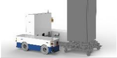 直接潛入貨物底部,利用升降裝置將貨物頂起,實(shí)現(xiàn)物料搬運(yùn)、回收作業(yè)。 | 通過可升降牽引桿,與物料托架自動(dòng)掛接和脫離,實(shí)現(xiàn)料車牽引。 | |